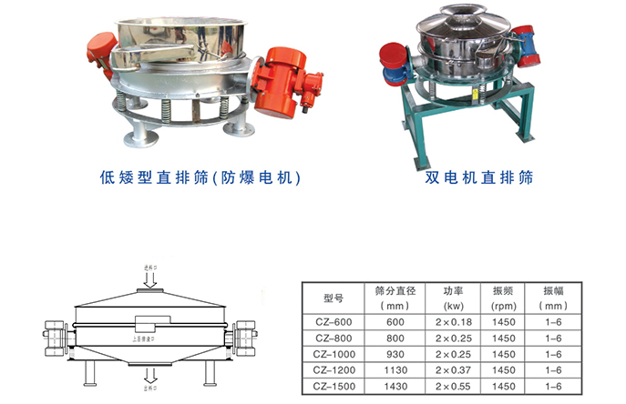 CZ系列直排篩是一種多用途新型篩分機,物料直接排放,處理量大。振動源分單電機和雙電機結(jié)構(gòu)形式。雙電機結(jié)構(gòu)相對于單電機結(jié)構(gòu)直排篩的物料的運行軌跡更平穩(wěn),上層物料可自動排放,設(shè)備適應(yīng)性顯著增加;